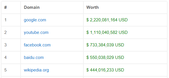 I kept searching until one day when I stumbled on a list of “Top 5+ Websites.” The list showed how much wealth each website has been able to amass.